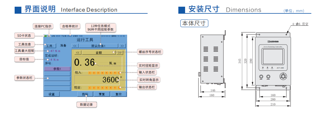 TFT-LCD可實(shí)現(xiàn)本機(jī)設(shè)置、編程及狀態(tài)的監(jiān)控與顯示 12種任務(wù)模式,可用于多種裝配需求 每個(gè)任務(wù)多達(dá)8種不同的扭矩參數(shù)設(shè)置 內(nèi)置伺服驅(qū)動(dòng)器,可提供扭矩、轉(zhuǎn)角監(jiān)控及減速擰緊等精密控制 提供用于流程控制的可編程10及系統(tǒng)擴(kuò)展組件 提供用于高級(jí)數(shù)據(jù)存儲(chǔ)及工廠控制交互的通訊接口 配有實(shí)體按鈕、LED指示燈等雙重操作及監(jiān)控寫能,以進(jìn)一步 提升控制器的可靠性 美觀緊湊的外形結(jié)構(gòu),方便靈活的安裝方式,適配于多種應(yīng)用場合重些聯(lián)系艾而特